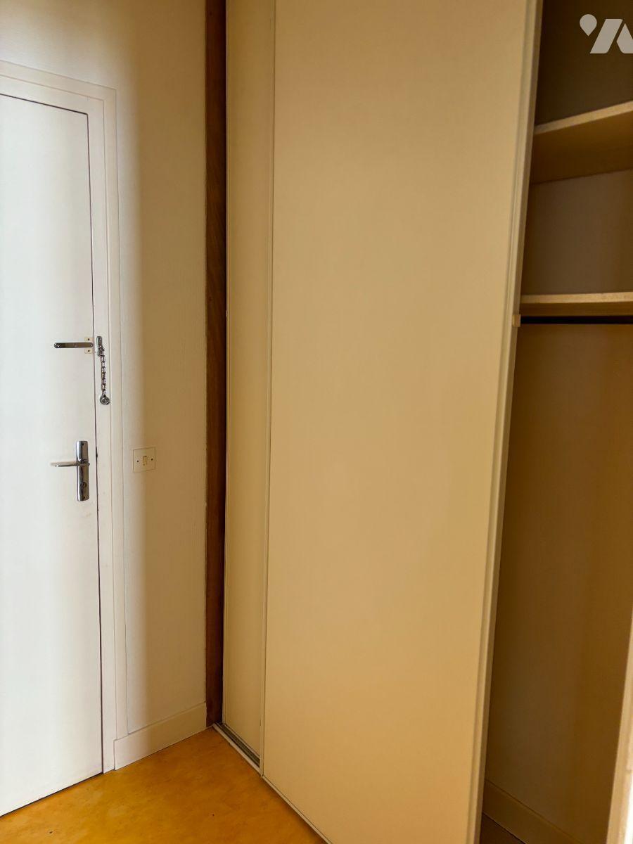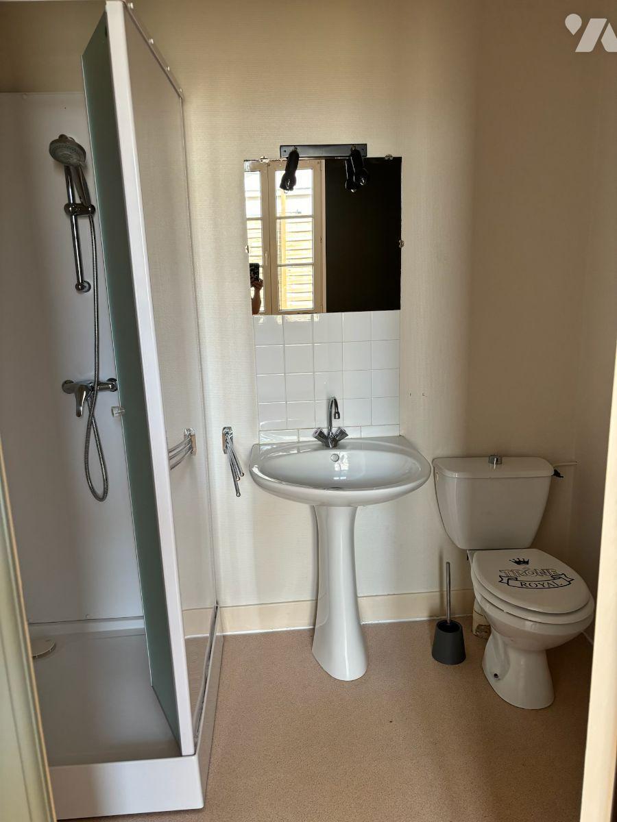 L'appartement comprend une pièce principale, qui peut être utilisée comme séjour et chambre, ainsi qu'une cuisine disposant des installations nécessaires pour la préparation des repas. Une salle d'eau est également présente, équipée d'une douche, d'un lavabo et de toilettes.
